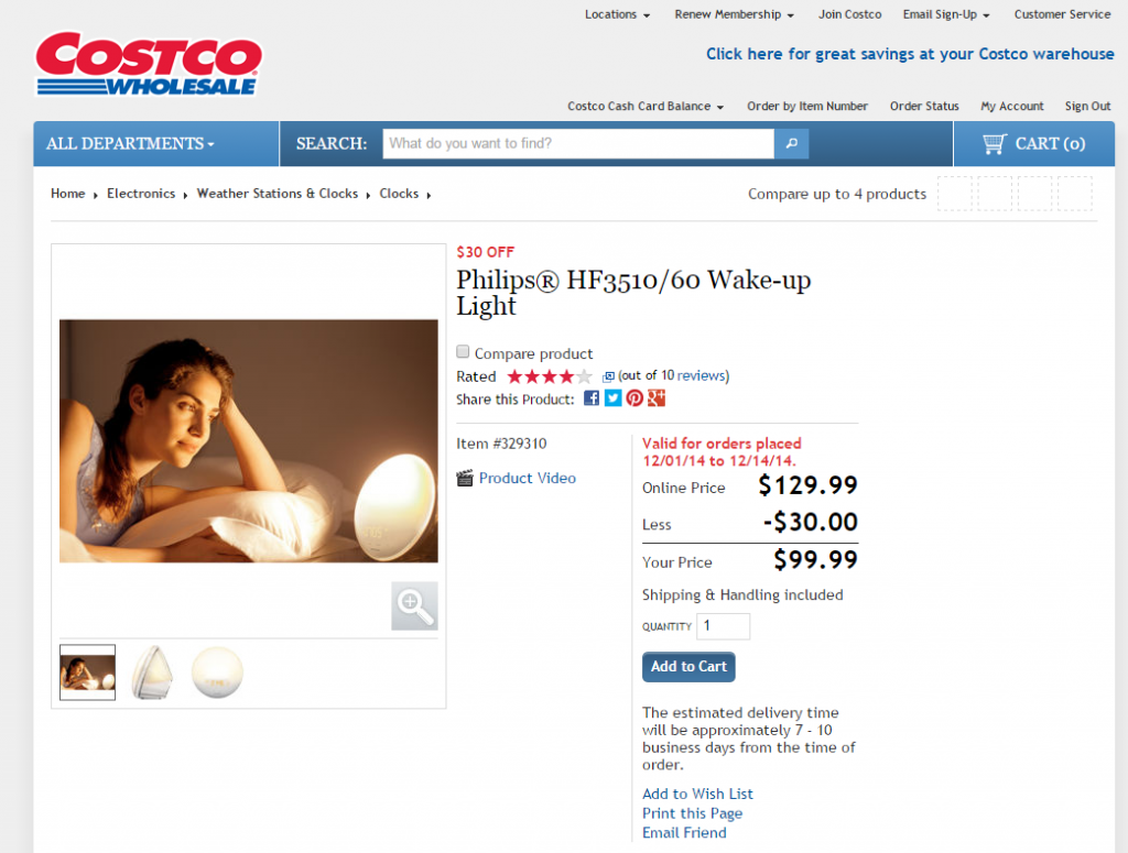 Philips Wake Up Light HF3510/60 - $99.99 at Costco.ca