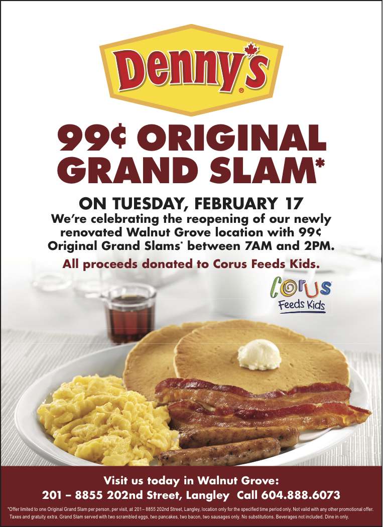 Denny's - Feb 17, $0.99 Grand Slam. Langley only