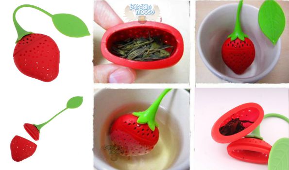 I found a similar strawberry infuser over at Tiny Deal for $2.30 that includes free shipping to Canada. Kitchen Stuff Plus has a silicone tea infuser shaped like a regular tea bag for $3.99. Shop.ca has a set of four tea infusers that are leaf shaped for $25.99.