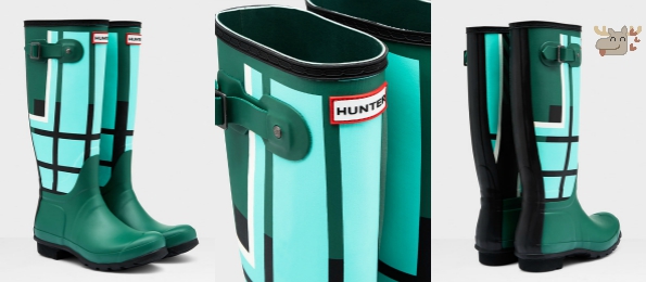 These green tartan rain boots are made in the classic, original tall Hunter rain boot fashion. The Hunter tartan is a reinterpretation of the classic Scottish design. The tartan is screen-printed onto cotton canvas with a water-resistant finish. The foot of the boot is made from the standard waterproof rubber.
