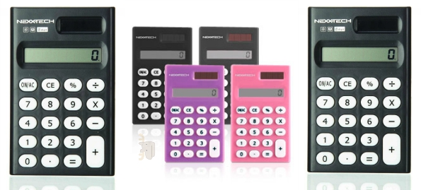 This little pocket calculator has an LCD screen, comfortable rubber keys, and transparent housing for a little fun. The calculator has two types of power input: it runs on both solar and battery power. The calculator will shut off automatically to conserve power.