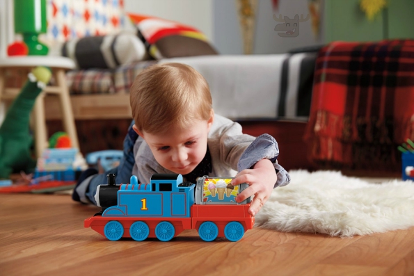 This is a fun little Thomas the Train with a few special deliveries to make. The spinning cargo reveals different types of cargo like ice cream, fireworks, and a bunch of bubbles. Each delivery has its own unique sounds and phrases that match the cargo. Batteries are included for out of the box play. This toy is designed for ages 18 months and up.