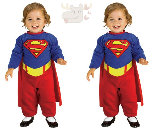 I googled for newborn Superman costumes to see if I could price compare for you guys – and the results were very positive. A similar outfit on Partycity.ca or Walmart.ca is $25. The same one on Costumesupercentre.ca is also $25. And on Oya Costumes, a baby Superman outfit would cost you $30 or more.