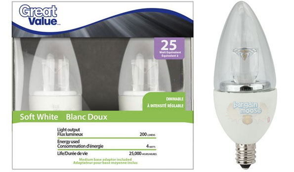 There are only limited quantities available and since they’re on clearance, there is a strong chance that they will sell out fast.These light bulbs are 4W LED frosted flame tip deco and come in a pack of two. As they’re energy efficient, these are actually the equivalent of 25W incandescent bulbs. They use less energy and should last up to 25,000 hours!