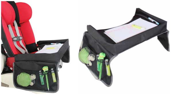 The Jolly Jumper Car Seat Travel Tray is a must-have for any mom who spends any amount of time driving her kids around. It is just $17.99 and will buckle securely around any car seat, booster, stroller, airplane seat, etc. It provides a flat surface for your child to draw, read, eat, watch moves on a portable DVD player and more. This is the least expensive option around for a tray like this. I compared this product to other brands and you would be looking at spending $30 or more on other brands from other retailers.