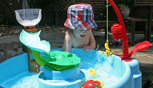 My three year old son loves playing with his toy fishing rod and toy fish in the bath tub, so I am sure he would love to have a water table like this for the back yard. If you are brave enough you could probably set it up in your kitchen or bathroom too, but I don’t think I am that brave after seeing my little one splash like crazy in the bath tub.