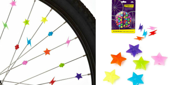 I like cool little gadgets and accessories that brighten up what you already own. This Bike Spokin Stars and Lightning set is a great way to spice up a bike with stars and lightning bolts that just clamp onto your spokes. Originally $7.95, they are now on sale for $3.97 per pack. Receive free shipping with no minimum purchase!