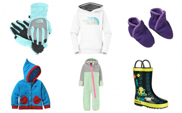 First off, The North Face has the best selection of items on sale. These Girl’s Denali Thermal Etip Gloves are fleece gloves that look fluffy and soft to the touch. They were originally $34.99 and are now 50% off, at $17.50. Below are a couple of other North Face items on sale, each piece cuter than the next: