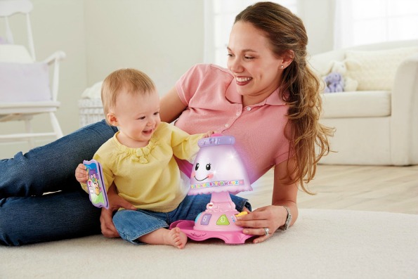 Seriously, this is the cutest lamp ever. The Laugh & Learn My Pretty Learning Lamp is designed for baby girls ages one through three. It has two modes of play: learning and music. Your baby will learn colours, shapes, numbers, counting, and more through interaction with the lamp. Your little one can press different shaped buttons to learn shapes. Lights will come on when they press buttons and the buttons will also trigger sing-along songs, tunes, and phrases. The lights will even dance to the music!