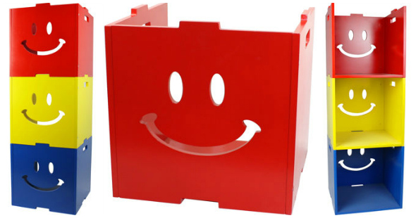 Another kids’ storage deal for you, Moosers! (Three guesses as to what my New Year’s resolution was.) I found this cute and whimsical Smiley Face Storage Cube Set at Costco.ca and couldn’t resist. And, Costco has it labelled a Hot Buy! I’ve nothing to compare it to but Costco wouldn’t lie to me, right? I did some searching around the web and couldn’t find anything similar anywhere so you’re getting cute, functional and unique all for $32.