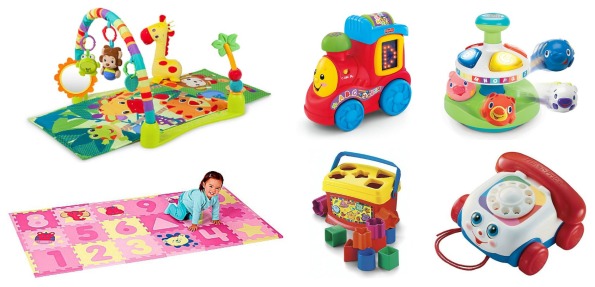 The Bright Starts Jungle Discovery Activity Gym is something that I had for my son even before he learned how to roll on his own. The fun colours and sounds were great to keep him occupied, and I loved all the coo and goo noises he made at the animals and the mirror. This activity gym was originally $79.99 but you can score it for 50% off which leaves you paying just $39.97. Another item that I personally had for my kiddo is the Fisher Price Laugh & Learn ABC Train. This little educational toy provided hours of fun for my little guy, and sometimes he pulls it out of the toy box even yet – and he is almost 3! This toy was $27.99 but you can call it yours now for just $13.97. There are tons of educational alphabet toys included in this sale. The Bright Starts Having A Ball Alphabet Pop Top gets that adorable belly laugh out of most little ones. It was $32.99 but now you will pay just $23.07.