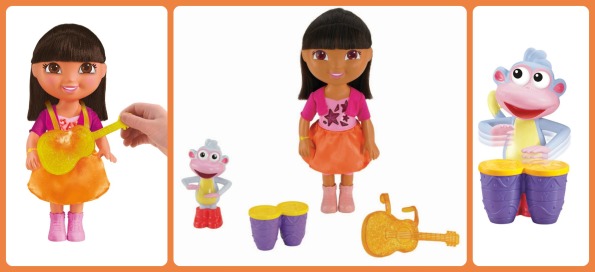 Together, Boots and Dora make a wonderful band. You can press on Dora’s tummy to see her torso light up, and each figure is articulated for lots of different ways to pose them. They even come with a classical guitar, bongo drums and a microphone stand. How cool is that? This toy is best suited for children between the age of 3 and 5. I am sure that is due to the small parts. If you have a younger child, just take away the small parts like the extra clothing and the microphone until your child is old enough to play with it and not consume it.